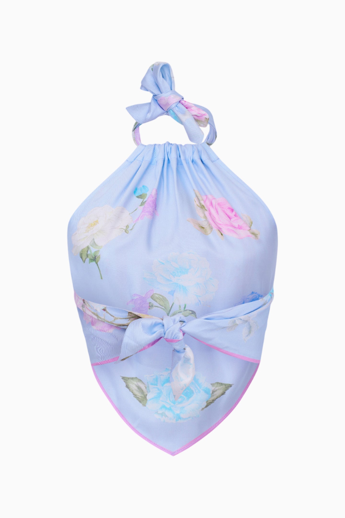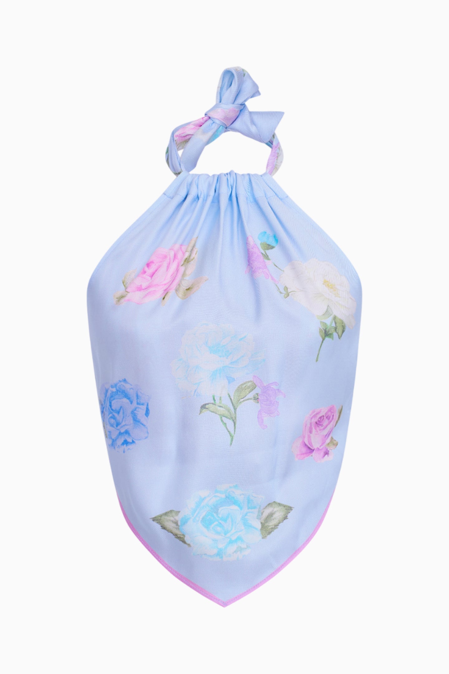 Introducing the Hollison Top. This flirty top features an Italian-inspired print with hand-painted flowers in a romantic arrangement. With a scarf-inspired silhouette, this halter top features a playful handkerchief form with a tie-detail around the neck. Pair with the Sapphira Skort for a full set.